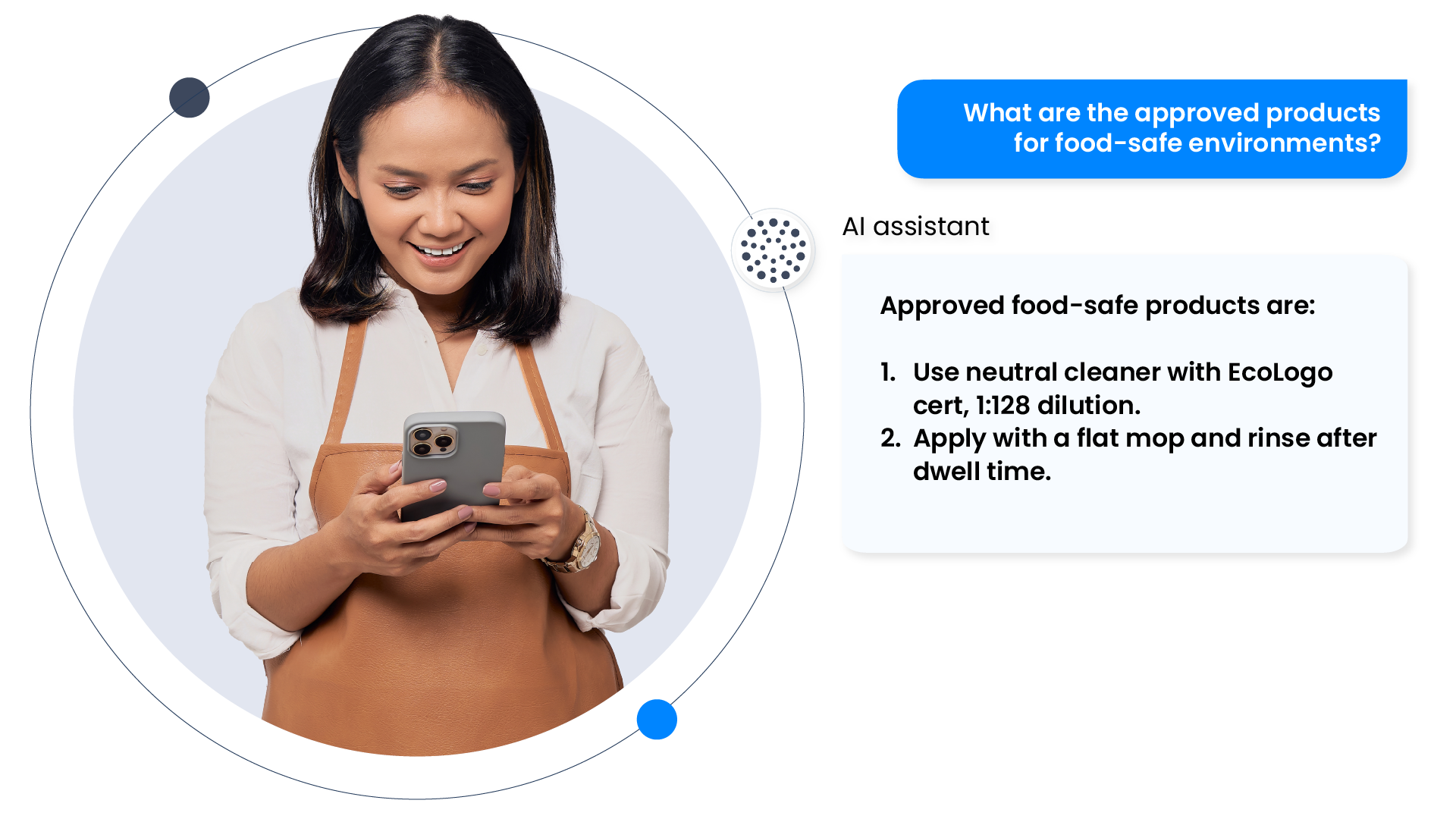 Whether staff need clarification on cleaning procedures, dilution ratios, or compliance steps. SAVI® Intelligence gives you guidance at the point of need.